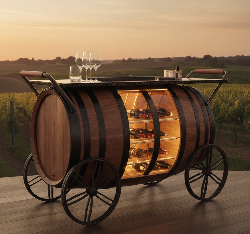 El Bar de Barril de Vino es más que un simple mueble; es una invitación a disfrutar de momentos memorables con amigos y familiares. Su estilo rústico se adapta a diversas decoraciones, desde cabañas acogedoras hasta modernos lofts, haciendo de este bar una opción versátil para cualquier ambiente.