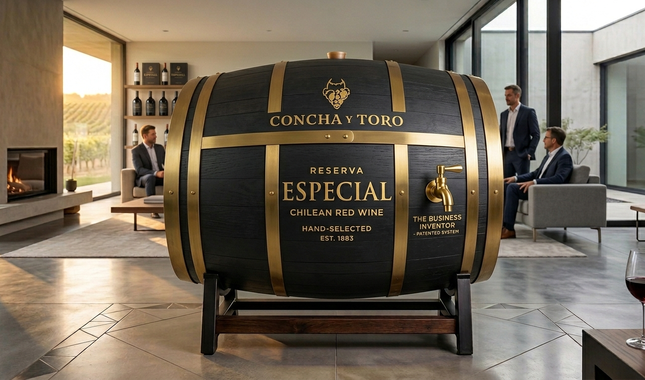 Hemos inventado y patentado un hermoso producto único en el mundo, el "envase de madera modelo barril de vino para botellas de 750 cc". Asemejando un barril de vino de roble francés de 225 lts hemos creado una replica en madera para botellas de vino de 750 cc., incorporando los típicos zunchos negros, bisagras y broches metálicos obteniendo un elegante y exclusivo porta producto el cual además podemos brandear con el logo de tu empresa o viña.